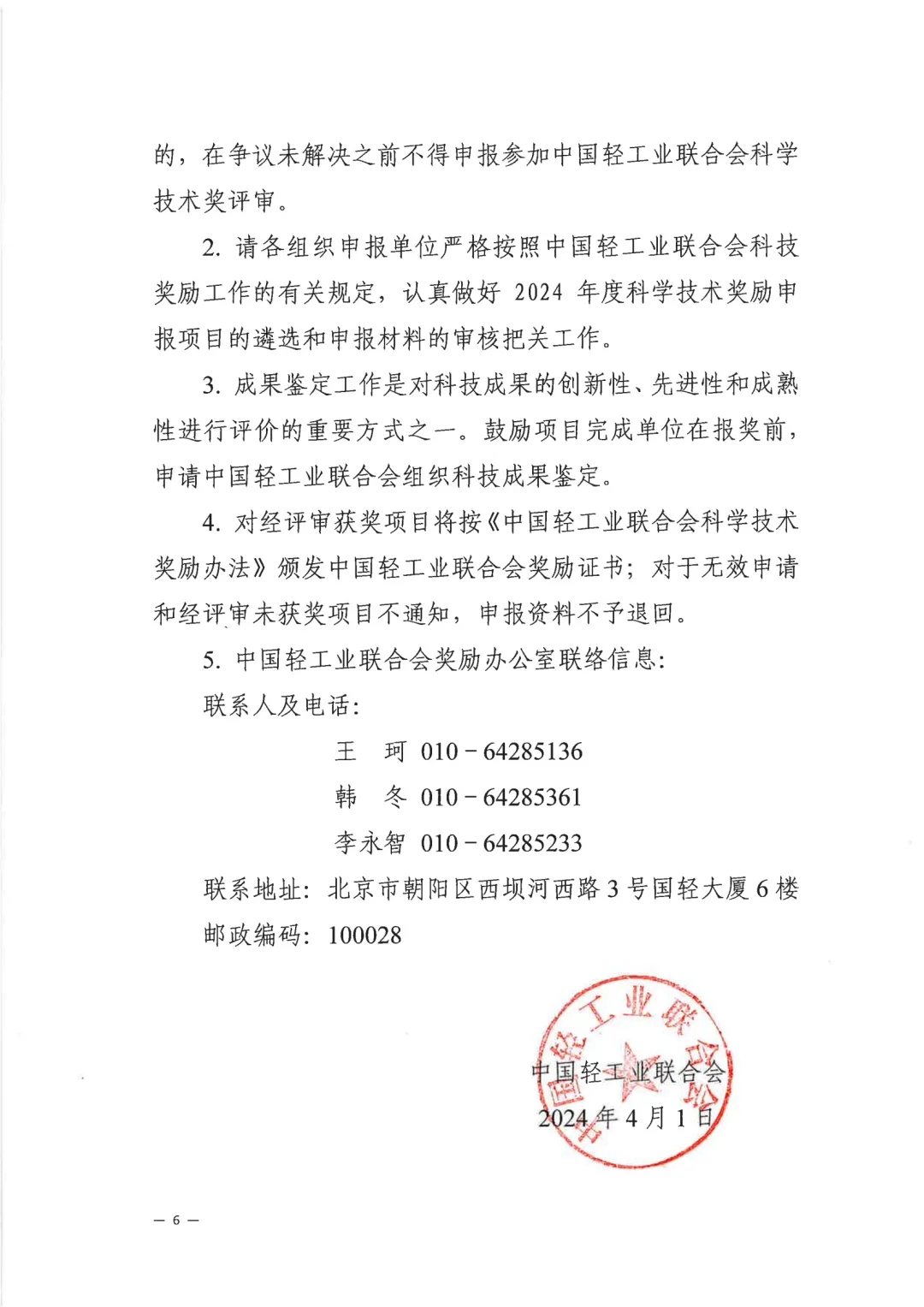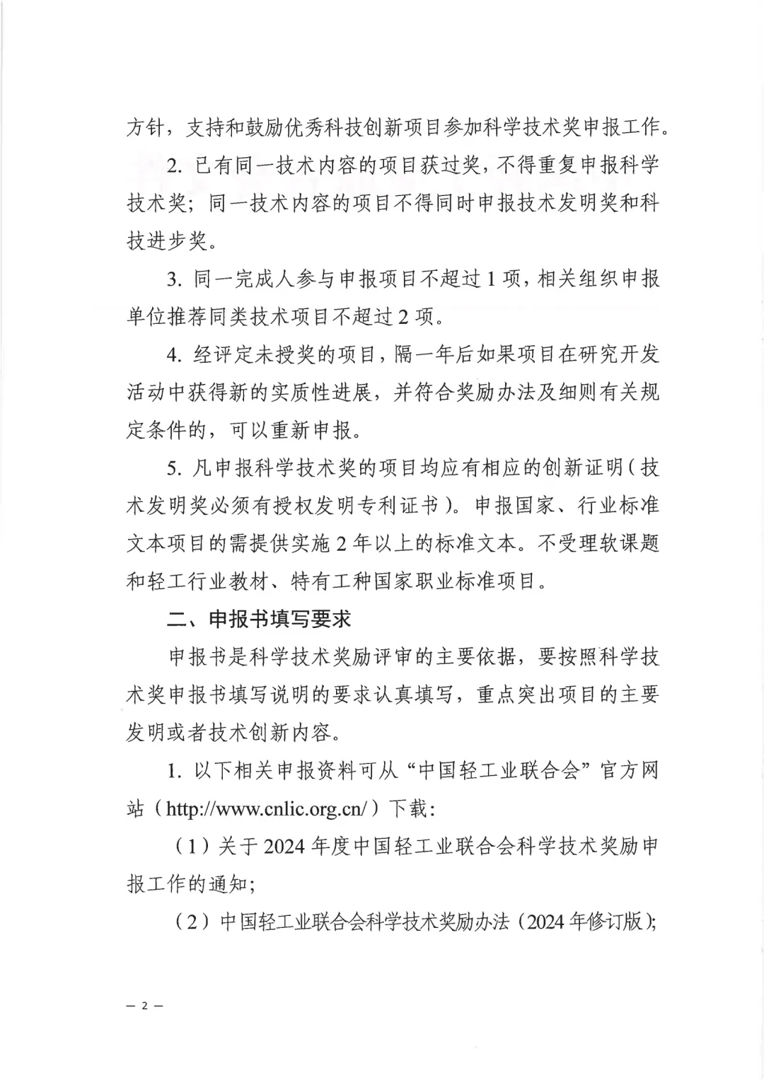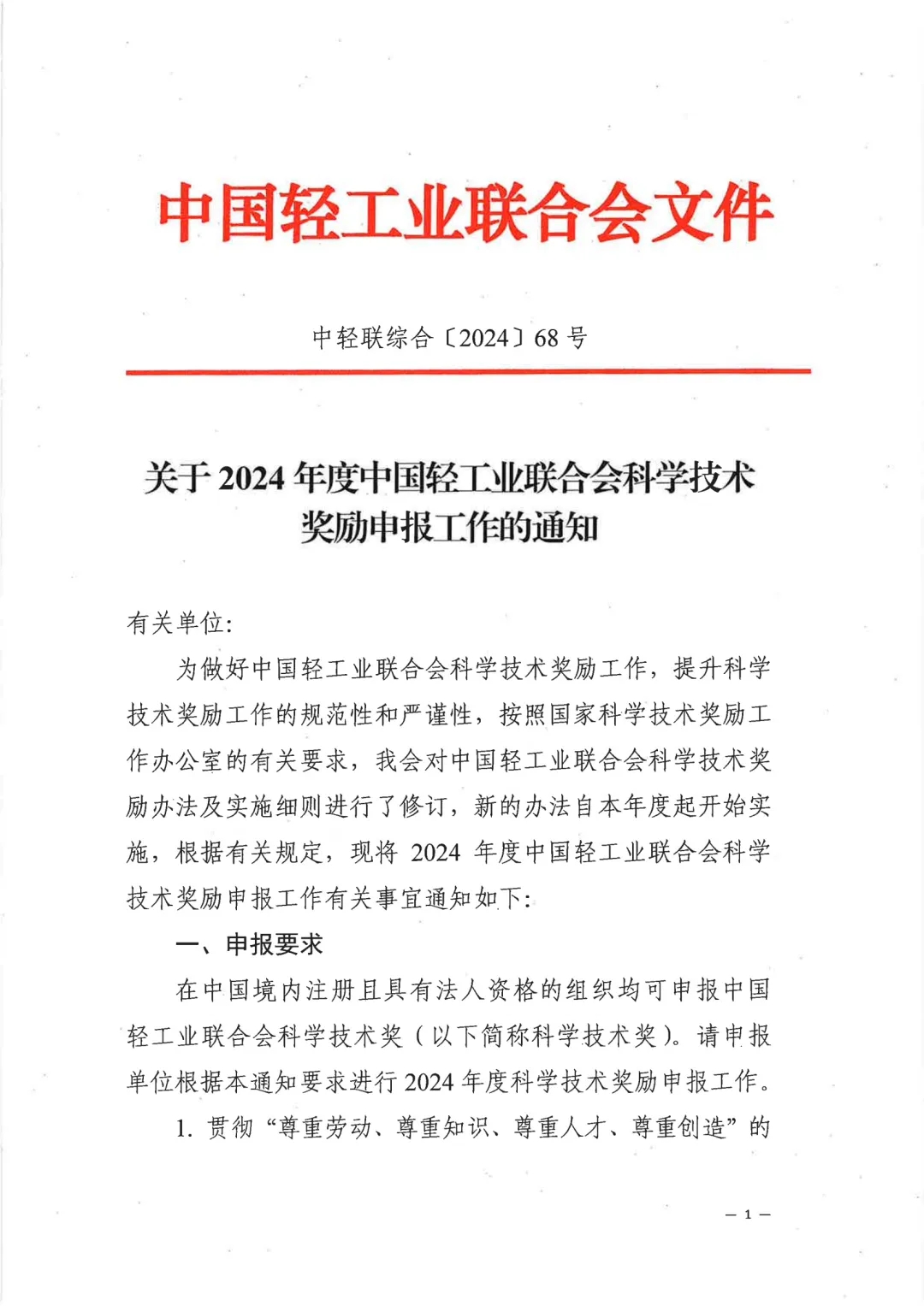 关于2024年度中国轻工业联合会科学技术奖励申报工作的通知