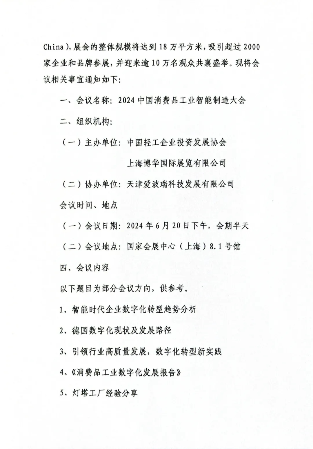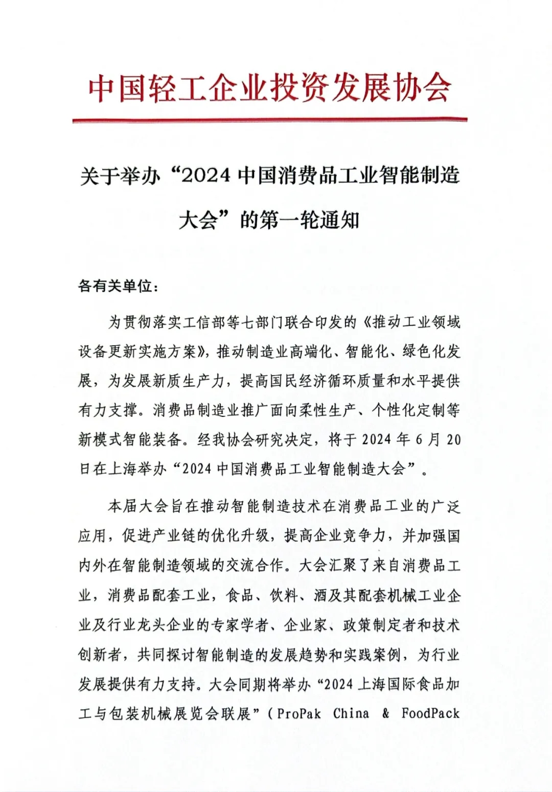 关于举办“2024中国消费品工业智能制造大会”的第一轮通知