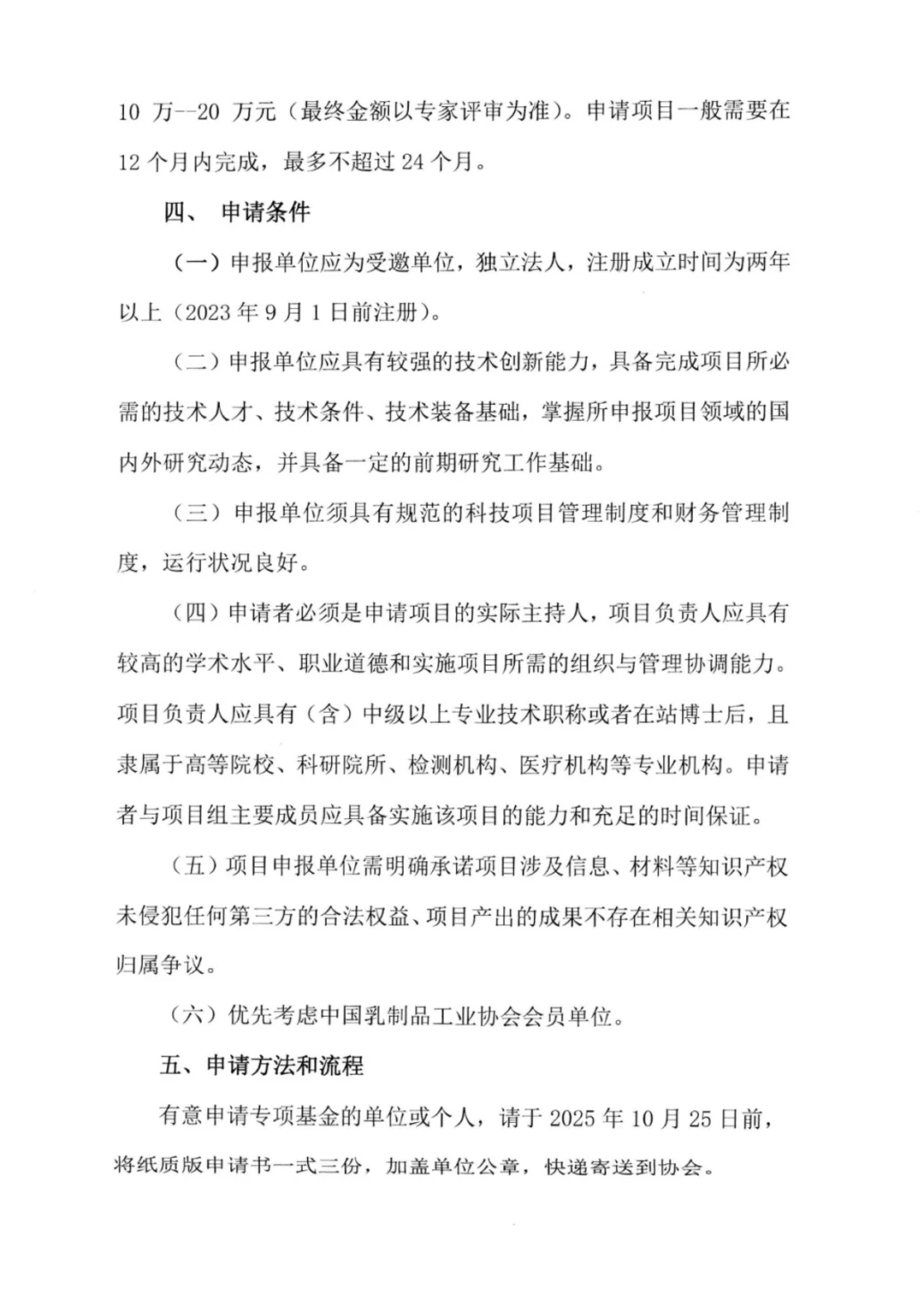 关于征集“乳业科技创新基金-利乐专项”2025年资助项目的通知