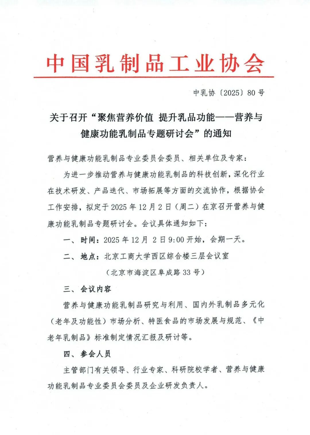 中国乳制品工业协会关于召开“聚焦营养价值 提升乳品功能——营养与健康功能乳制品专题研讨会”的通知