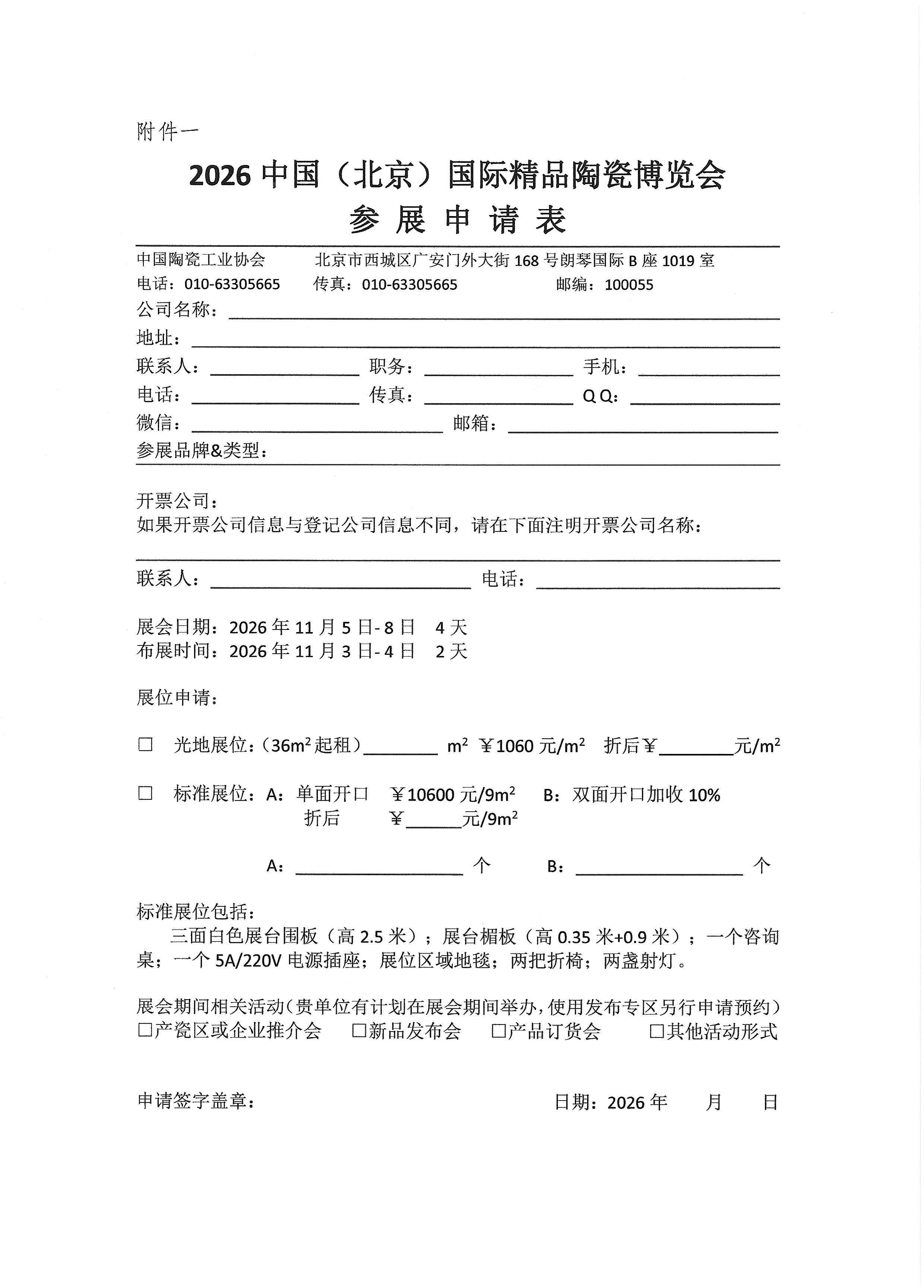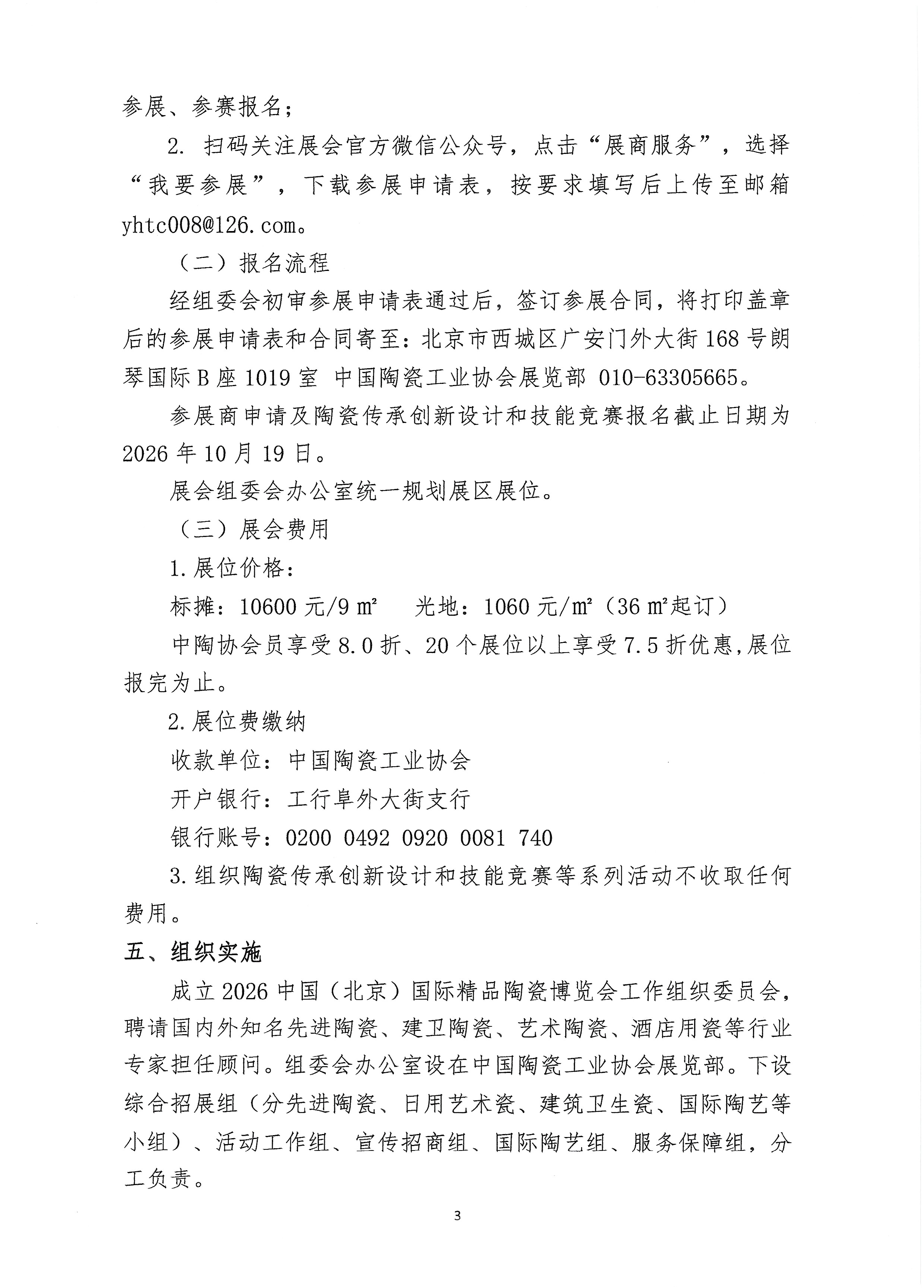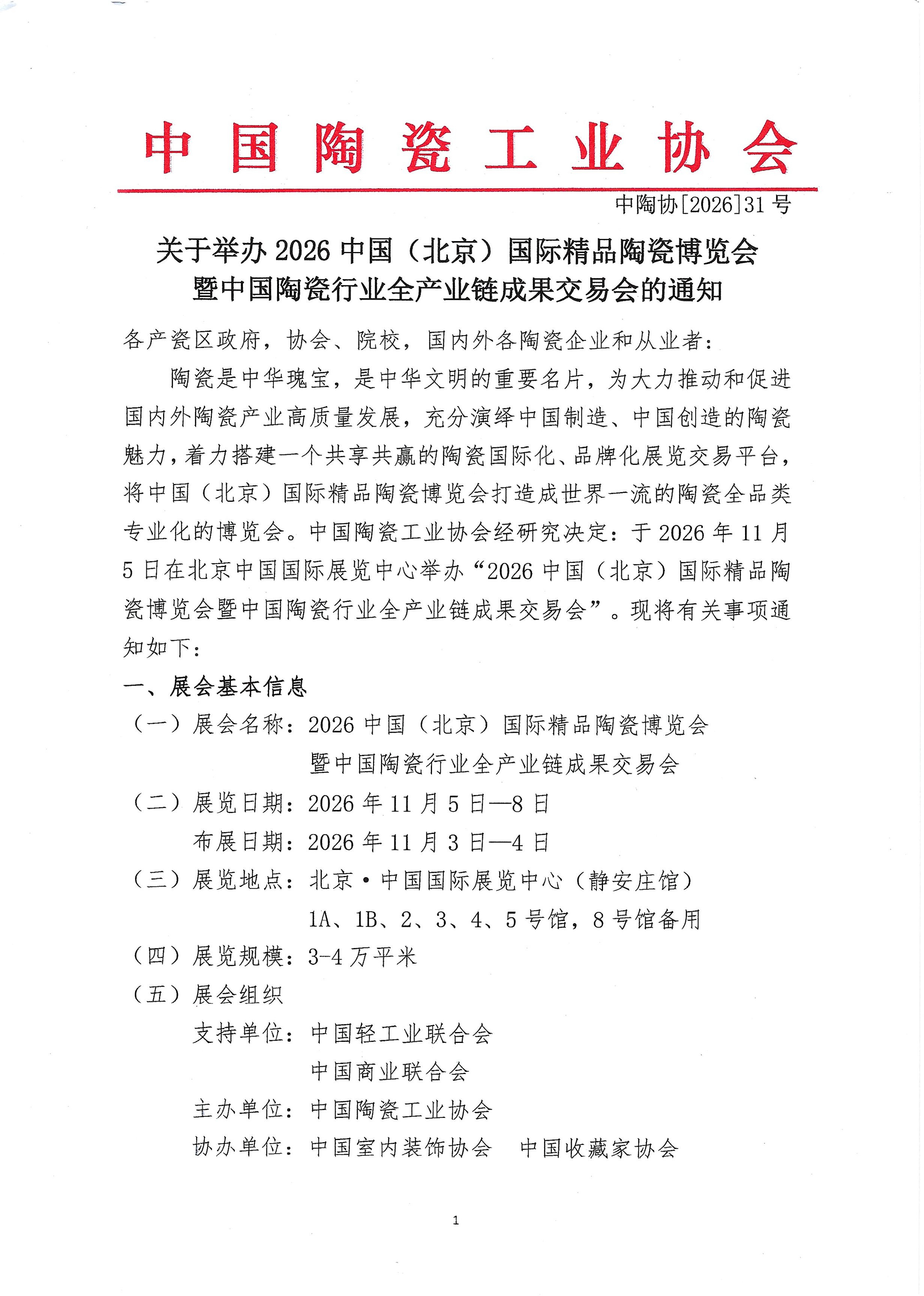 中国陶瓷工业协会关于举办2026中国(北京)国际精品陶瓷博览会暨中国陶瓷行业全产业链成果交易会的通知