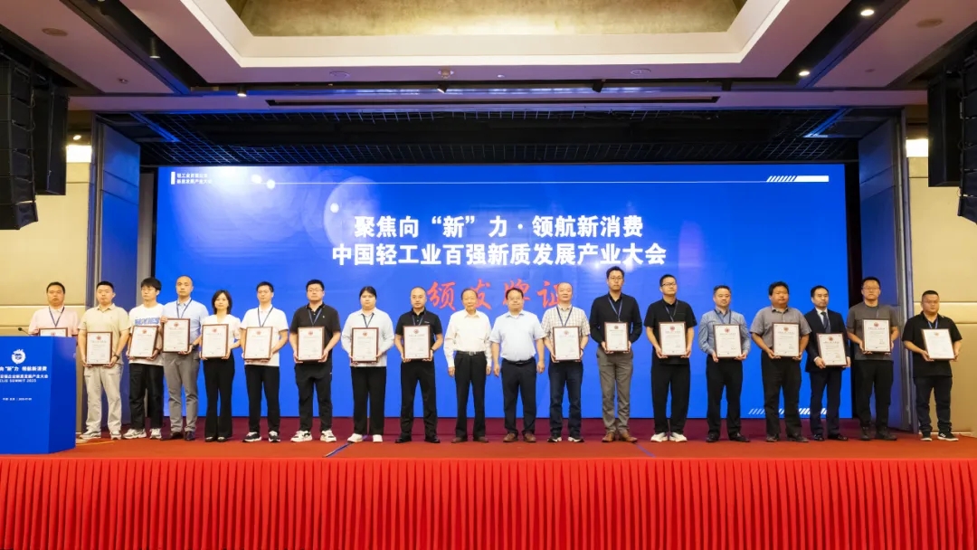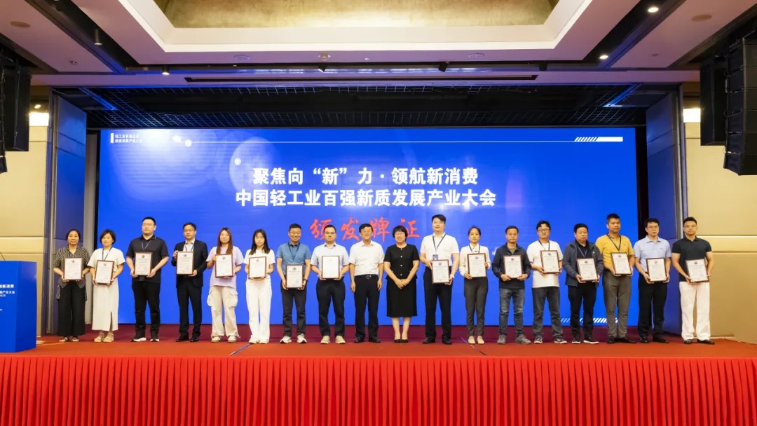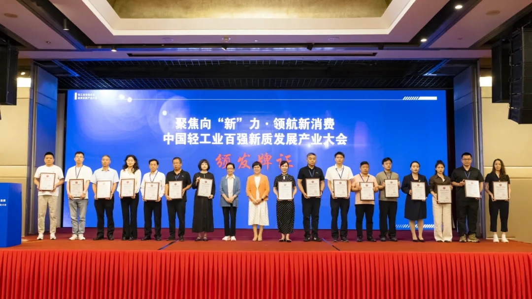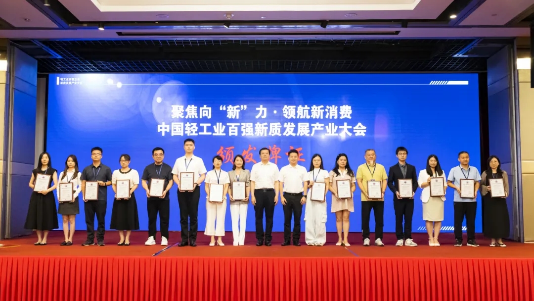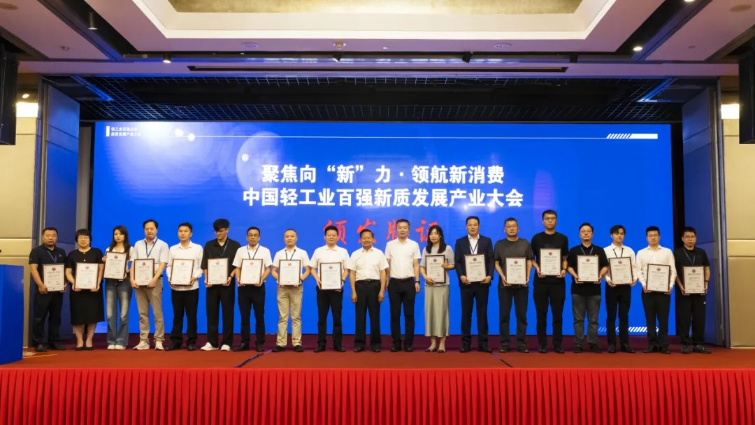 ——高端化新质发展,领航轻工强国建设。轻工百强企业,要以高端化铸就产业脊梁,攀登价值新高峰。近年来,轻工企业,特别是百强企业,加强科技创新,加快高端新质发展。海尔、美的、格力、青啤、太阳纸业、晨鸣纸业、华泰纸业、科力远、恒顺醋业、杭州中亚、汇源饮料、润德生物、无限极等企业,荣获国家科技奖励;家电骨干企业,汇聚产学研用力量,组建“国家高端智能化家用电器创新中心”,在全球设立研发中心200余个;安琪酵母,积极布局未来产业赛道,以生物技术生产酵母蛋白等功能性健康产品;冠生园、银鹭食品,飞亚达、海鸥钟表,雷士、佛山照明,仙鹤纸业、双星鞋业等企业,创新技术,产品登上“神舟”飞船,有力支撑载人航天事业;中国轻工联累计评选的11批914个升级与创新消费品,集中展现行业创新升级,满足了人民群众高品质生活需要。智慧家居、新能源电池、缝制机械等行业,科技创新带来的制造优势领先全球。面向“十五五”,中国轻工联将进一步完善评价机制,未来五年评选轻工行业科技奖1000项,精心选送国家奖80项,评荐“升级与创新消费品”500个,发挥138家轻工业重点实验室、127家轻工业工程技术研发中心技术创新先锋作用,引领轻工业创新发展。轻工百强企业,要勇攀科技高峰,加大研发投入,研发强度力争达到4%;要积极参与国际标准化组织建设和标准研制,强化国际话语权;要加强工业设计与品牌建设,引领消费风尚;要通过科技赋能、标准引领、先进制造和模式创新,引领轻工业高端化创新发展,领航轻工强国建设。