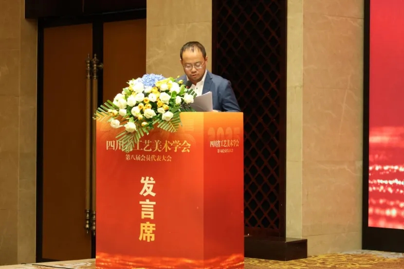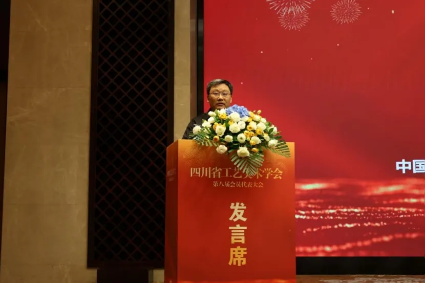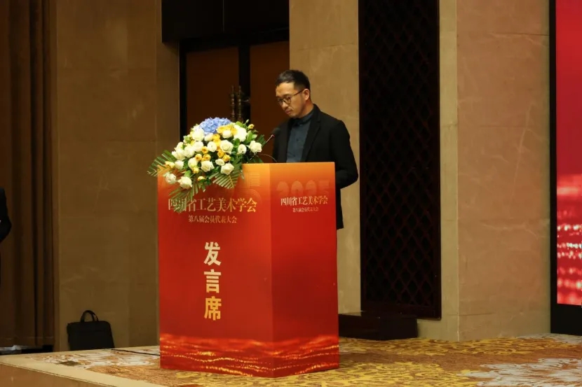 大会闭幕式上,四川省工艺美术学会第八届理事长王立博,向全体与会成员致以诚挚谢意。他表示,学会将以此次换届为重要契机,深耕工艺美术学术研究,搭建高质量产学研融合平台,推动传统工艺与现代创意深度融合,助力四川工艺美术事业在新时代绽放更绚丽光彩,为四川文化强省建设贡献坚实工美力量。