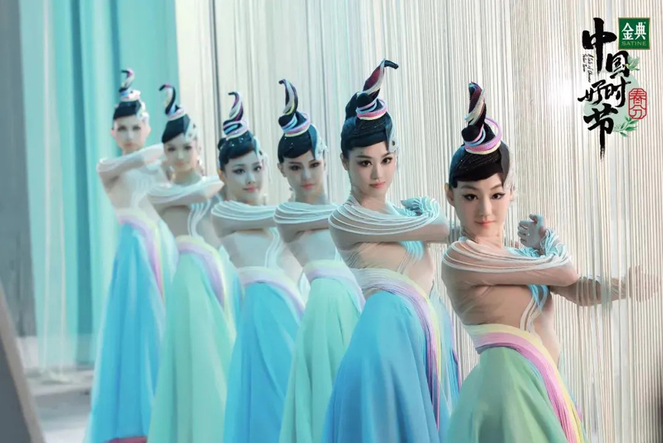 现如今,杭罗在很多领域绽放着新生魅力。2022年,浙江卫视《中国好时节·春分篇》推出了以杭罗织造技艺为灵感的现代群舞《盼春织》。舞蹈将《天工开物》中记载的杭罗织机化为舞台,以机杼声为音乐节奏,舞蹈演员身着杭罗材质舞裙,幻化成“织梭精灵”穿行游走于万千丝线之间。编舞将杭罗织造技法与演员的肢体动作融合,造型师以杭罗为底,配合流动感的丝线将服装从头到脚萦绕包裹,形成“丝缠于梭,梭为丝动”的视觉意象。这种传统工艺与现代舞蹈的创新结合,为传统文化注入了新的生命力。