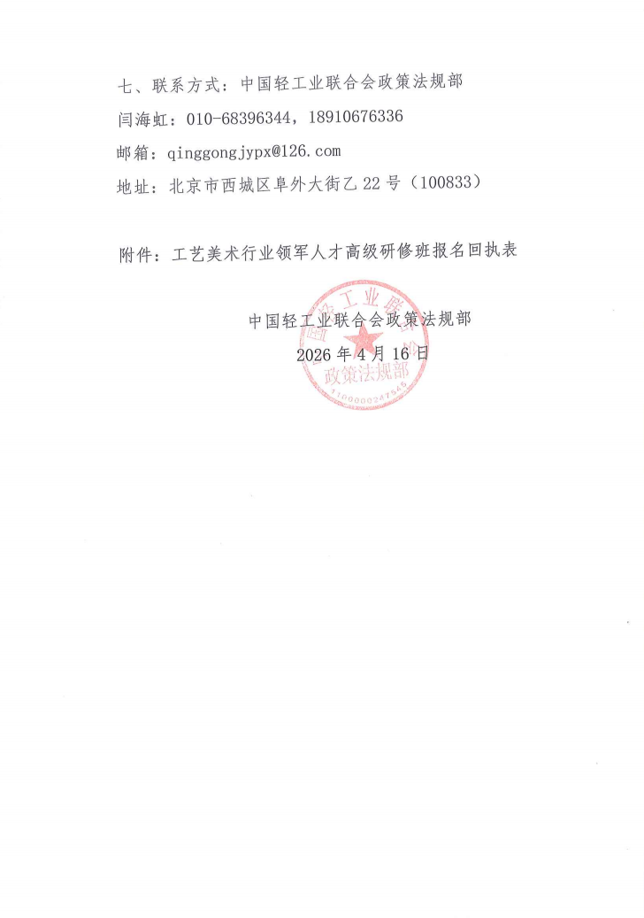 七、联系方式:中国轻工业联合会政策法规部