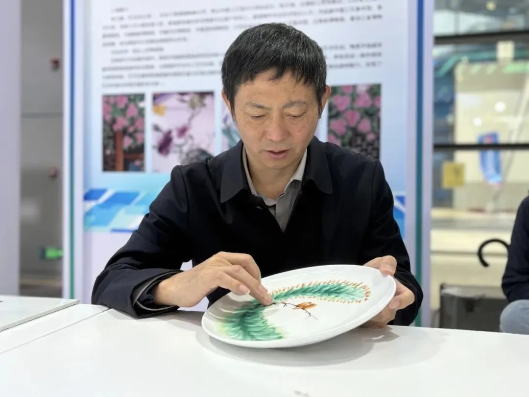图为全国轻工劳动模范、江西省工艺美术大师林卫国在展示瓷上手指画技艺。该技艺既是独具特色的新兴画种,亦是顺应新时代发展潮流、应时而生的艺术形态。不仅兼具表演层面的观赏价值与实操过程的便捷高效,更在装点日常生活与满足收藏需求上展现出独特魅力,实现了艺术价值与实用价值的多元统一。