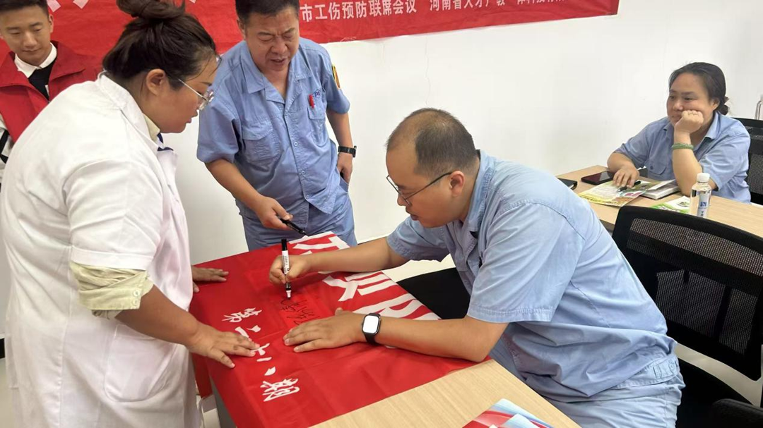 活动中每个员工都在宣传横幅上签上自己的名字,向安全生产致敬!