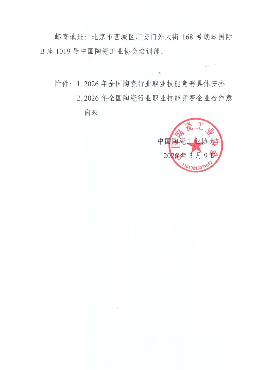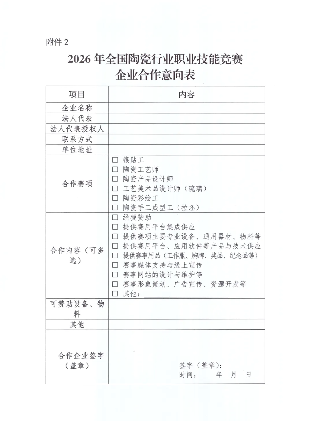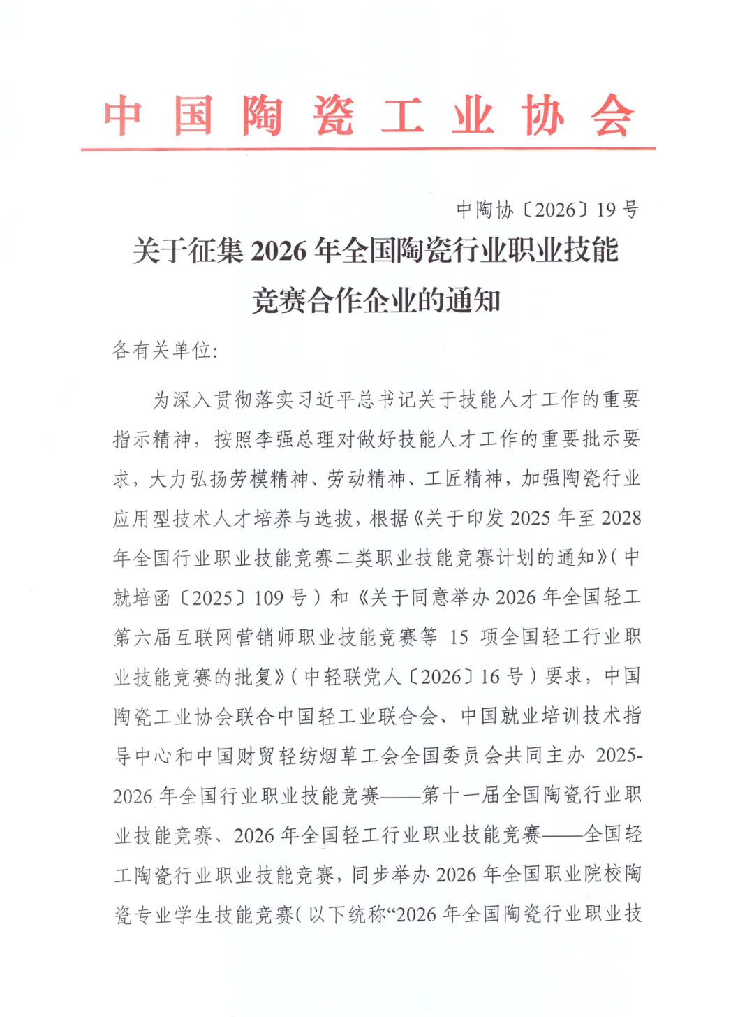 关于征集2026年全国陶瓷行业职业技能竞赛合作企业的通知