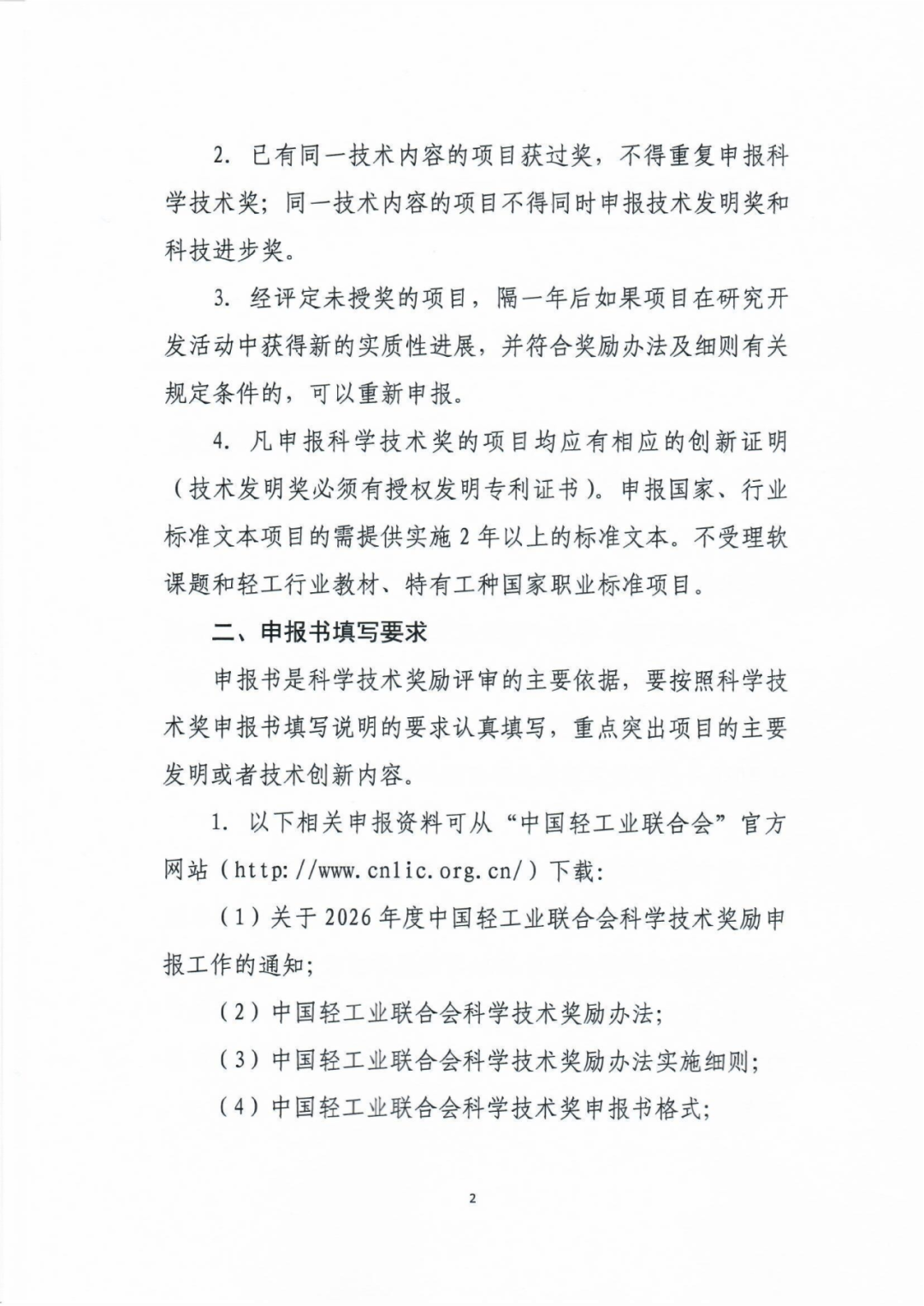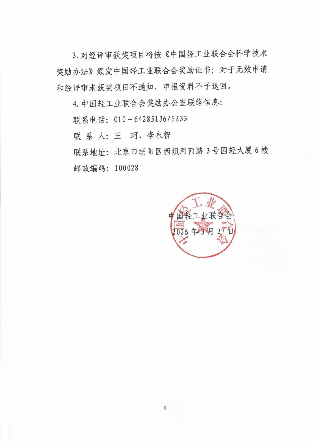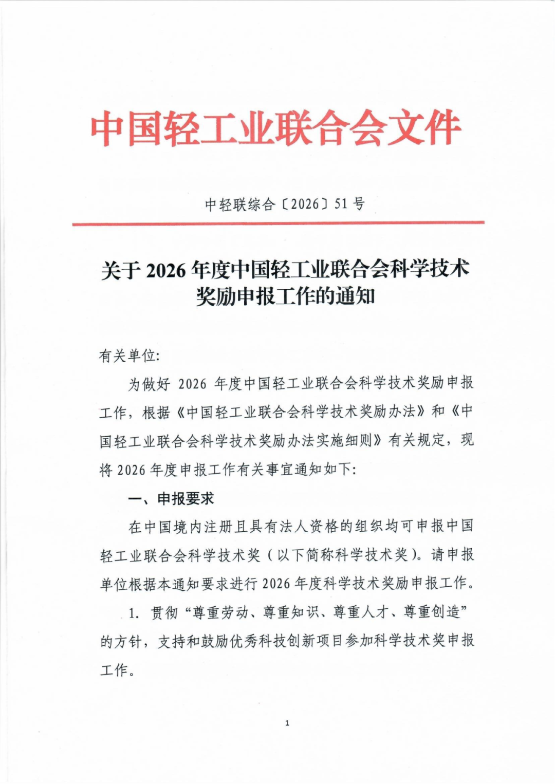 2026年度中国轻工业联合会科学技术奖励工作正式启动