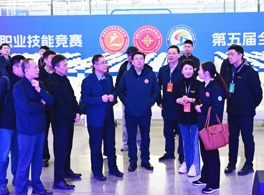 刘江毅一行随后前往制图员、人工智能训练师、家具设计师、陶瓷产品设计师四大赛项比赛场馆,查看赛项设置、设备布置、选手信息等情况,与各赛项裁判长进行深入交流,详细了解赛事规模、流程安排、评分规则及后续改进建议。他指出,未来需持续完善赛题设计,增强竞赛内容的专业深度与赛程组织的规范程度,要加快推动竞赛成果向市场转化,从而为轻工行业培养、输送更多高水平技能人才。