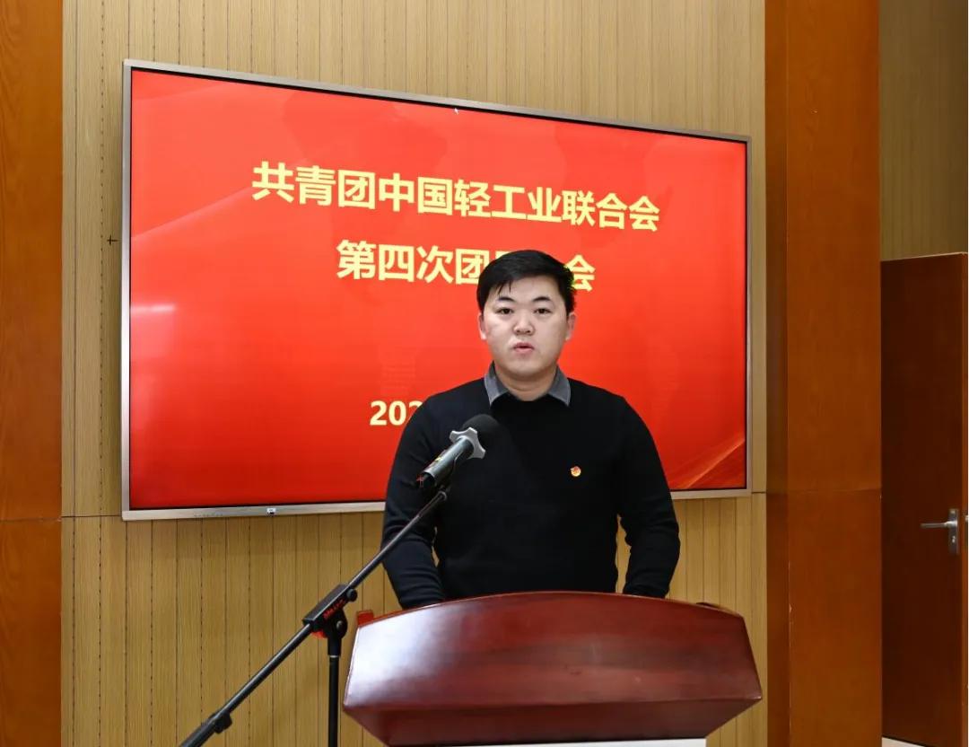 新任团委书记马占平同志代表中国轻工联第四届团委作表态发言,表示要坚持思想引领,自觉做党的坚定信仰者和忠诚实践者;提升履职本领,搭建轻工青年成长建功新平台;真心服务青年,让轻工团委成为广大轻工青年信得过、靠得住、想得起的温暖家园。
