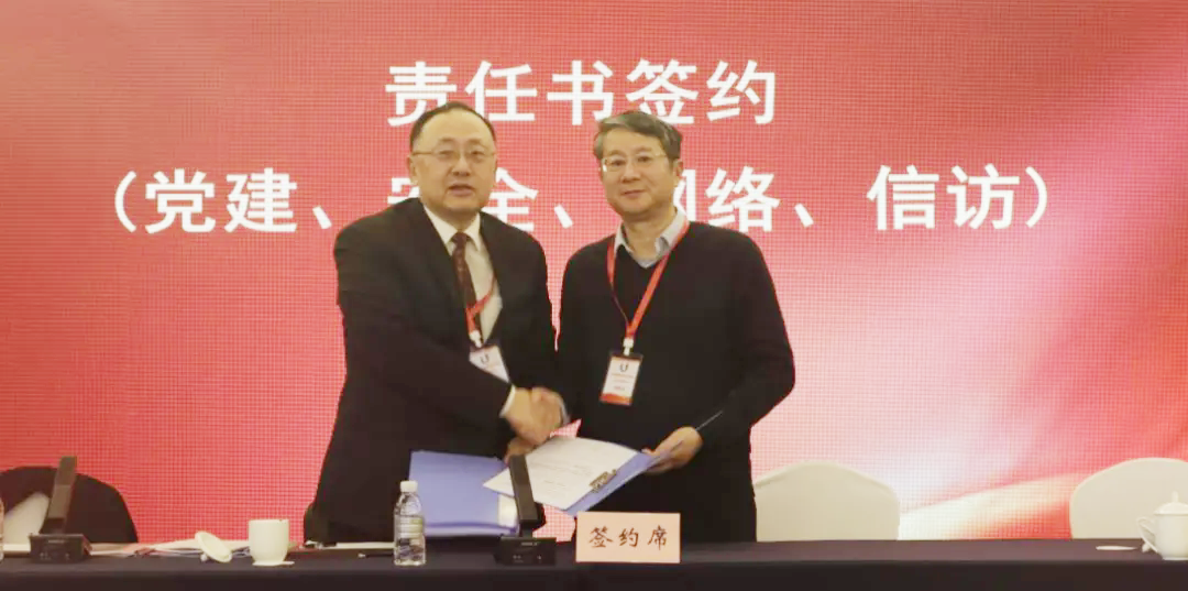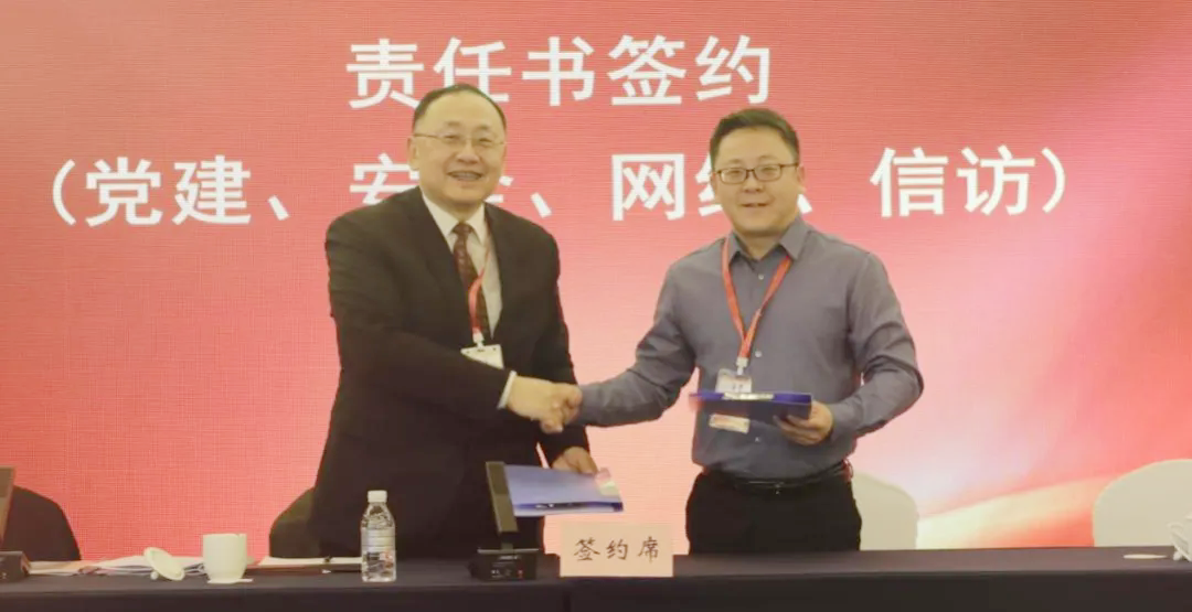 关坚韧同志与直属党组织、二级企业党政负责人代表分别签订党建、安全消防、网络信息、信访等工作目标责任书。