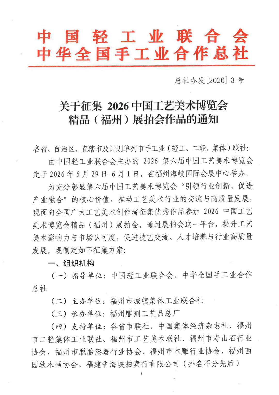 总社关于征集2026中国工艺美术博览会精品(福州)展拍会作品的通知