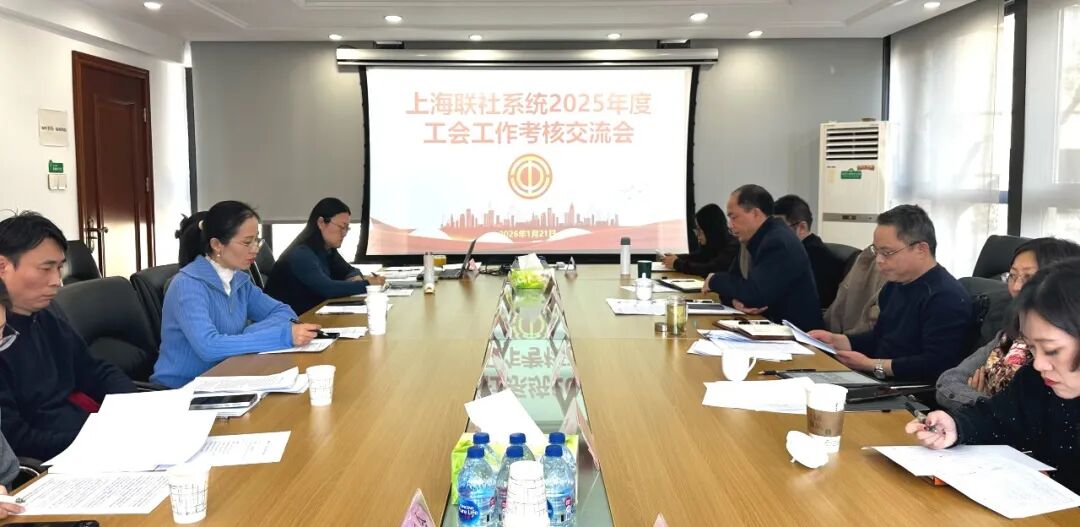 1月21日,上海联社工会组织召开联社系统2025年度工会工作考核交流会。会议由联社党委副书记、工会主席乐训蓥主持,联社工会委员、经审主任、财务负责人及各直属工会主席参加。
