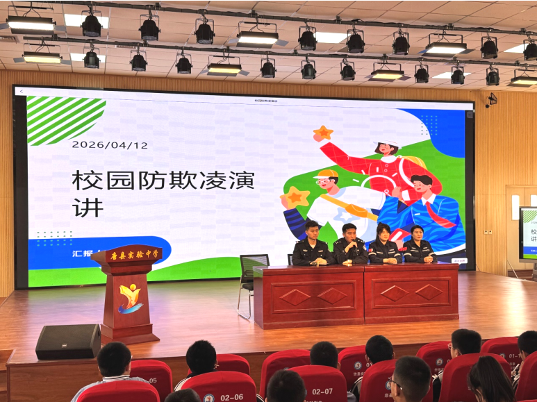4月24日,唐县公安局治安大队、法润唐尧宣讲队、城关派出所走进唐县实验中学,为初中生开展专题法治宣传教育第一课。